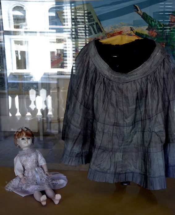 Juego de saya y sayuela utilizado por una combatiente clandestina para trasladar armas, municiones y mensajes. En la muñeca, una mensajera trasladó a los comandantes Camilo Cienfuegos y Ernesto “Che” Guevara, una comunicación acerca de un envío de armas.