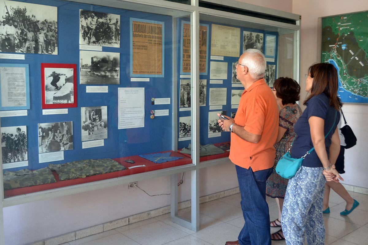Sala dedicada a la batalla de Playa Girón, librada del 17 al 19 de abril de 1961. Se muestran fotos de la gesta, así como un uniforme y otros objetos personales ocupados a los mercenarios que, organizados y financiados por el Gobierno de Estados Unidos, desembarcaron en Cuba con el propósito de derrocar a la Revolución.