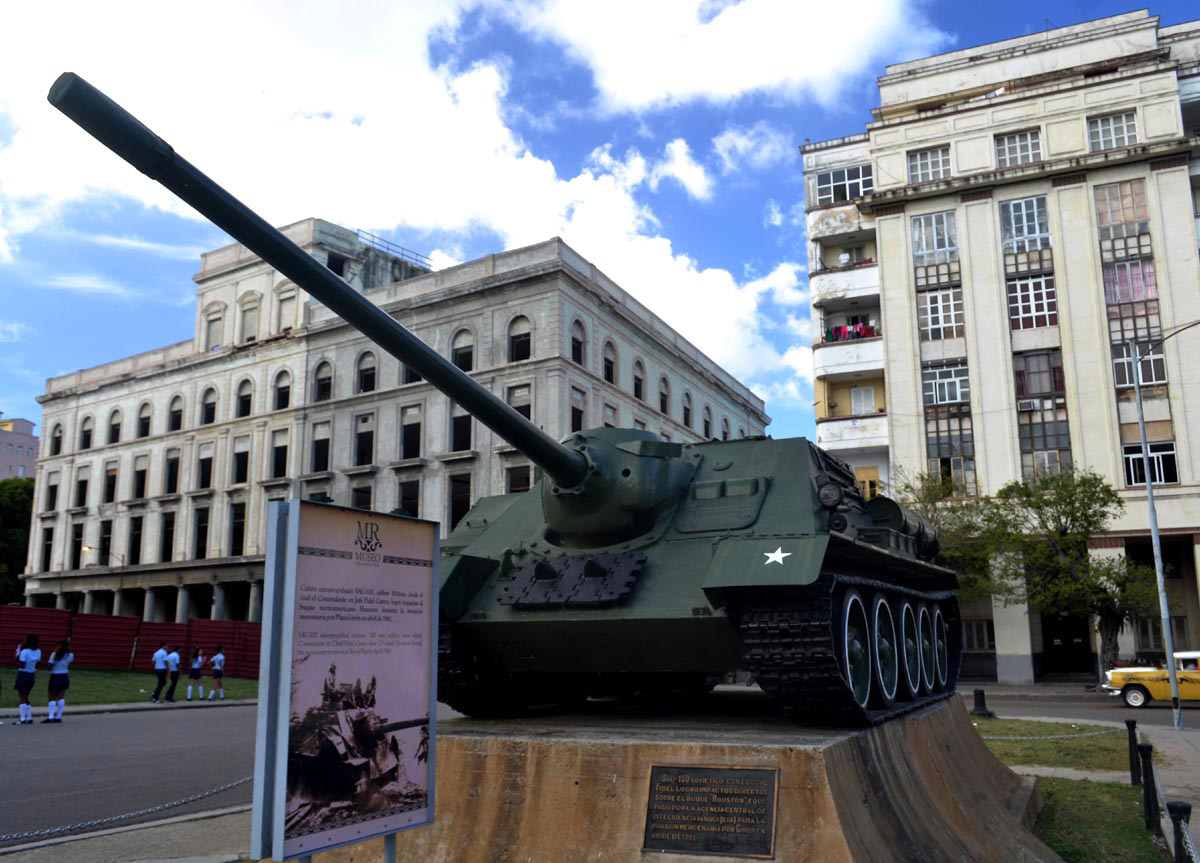 35 En el exterior, frente al edificio, el cañón SAU-100 con que el Comandante en Jefe Fidel Castro Ruz hundió el buque mercenario Houston, recuerda su participación directa en la batalla, desde los momentos iniciales y hasta obtención de la victoria.