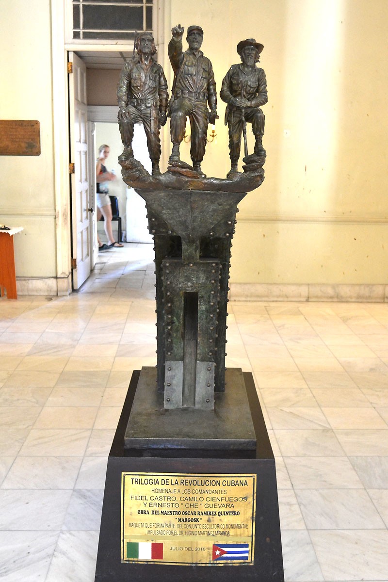 Trilogía de la Revolución Cubana, homenaje del maestro mexicano Oscar Ramírez Quintero, Margosk, a Fidel, Camilo y el Che. Donada por el autor al Museo de la Revolución.