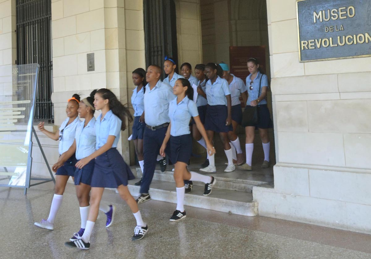 El Museo de la Revolución es un medio de apoyo a la enseñanza de la historia patria. En la instantánea, un grupo de estudiantes del nivel preuniversitario cuando se marchaban tras una visita de carácter docente.