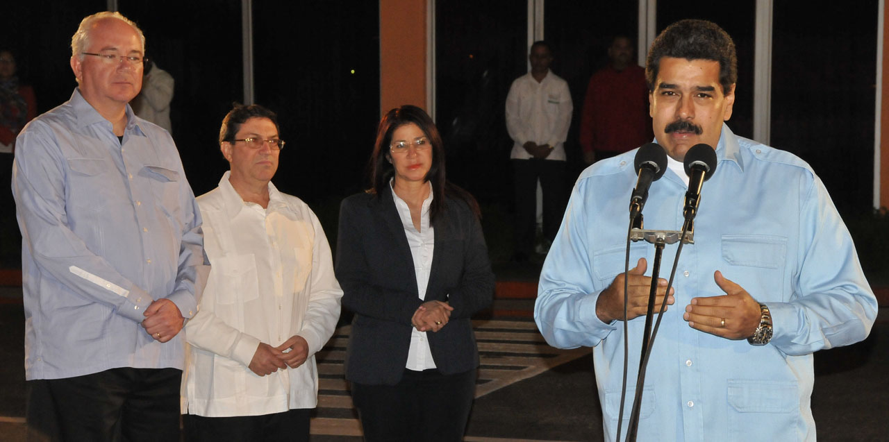 En el Aeropuerto Internacional José Martí, el presidente bolivariano fue recibido por el canciller Bruno Rodríguez Parrilla, miembro del Buró Político del Comité Central del Partido Comunista de Cuba, junto a su par venezolano Rafael Ramírez, quien había arribado a La Habana en la tarde.
