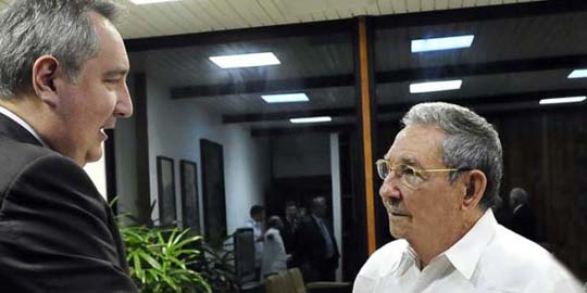 El General de Ejército Raúl Castro Ruz, Presidente de los Consejos de Estado y de Ministros, recibió este viernes al vicepresidente del Gobierno ruso, Dmitry Rogozin, quien realiza una visita a Cuba en ocasión de la XII Comisión Intergubernamental Cuba-Rusia.