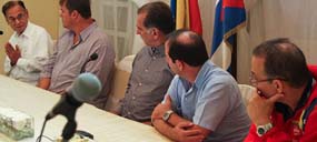El encuentro con los luchadores cubanos contra el terrorismo contó con la presencia de Ricardo Alarcón, uno de los más importantes defensores de esta causa en la Isla y el periodista cubano Max Lesnik, quien desde Miami fue una de las voces más fuertes por la liberación de los Cinco. También estuvieron presentes diplomáticos de la embajada venezolana en La Habana y funcionarios de las instituciones bolivarianas acreditadas en la Isla.