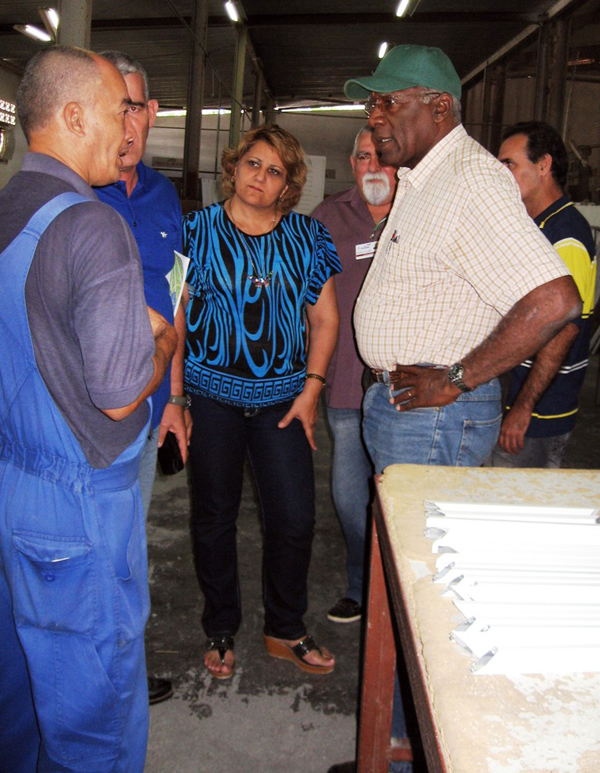 En la empresa Micalum, del sector de la construcción, Valdés Mesa conoció de la intensa labor que ejecutan para cumplir los compromisos de producción. Foto: Juan Carlos Dorado