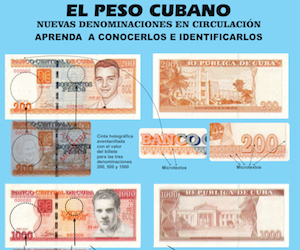 Como es de conocimiento de la población, en los últimos meses se ha ido extendiendo el uso del peso cubano en los comercios que operan con pesos convertibles (CUC), lo que ha incrementado la demanda de billetes de alta denominación en la circulación. A partir de lo anterior, el Banco Central de Cuba informa que se ha decidido llevar a cabo, de forma gradual, la emisión de nuevas denominaciones de billetes en pesos cubanos (CUP), con el objetivo de facilitar estas operaciones.