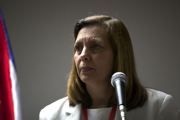 Josefina Vidal.- Por ejemplo, Obama, en uso de sus prerrogativas, pudiera permitir mañana que una compañía norteamericana comercie con Cuba, comercie en ambas direcciones, que exporte y que importe; pero Obama no puede permitir, porque es una prohibición del Congreso, que la filial, la subsidiaria de esa misma empresa en otro país pueda comerciar con Cuba.