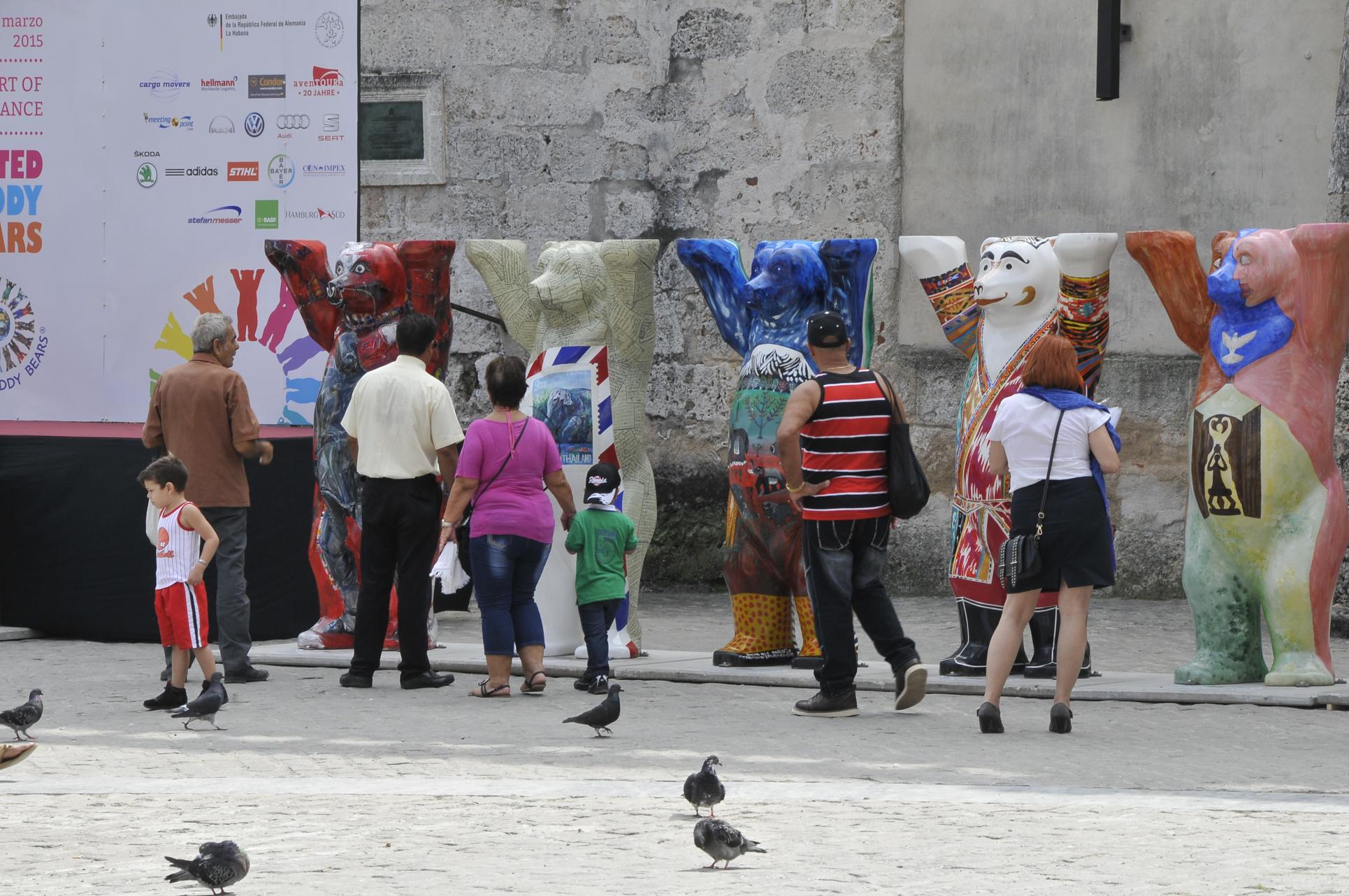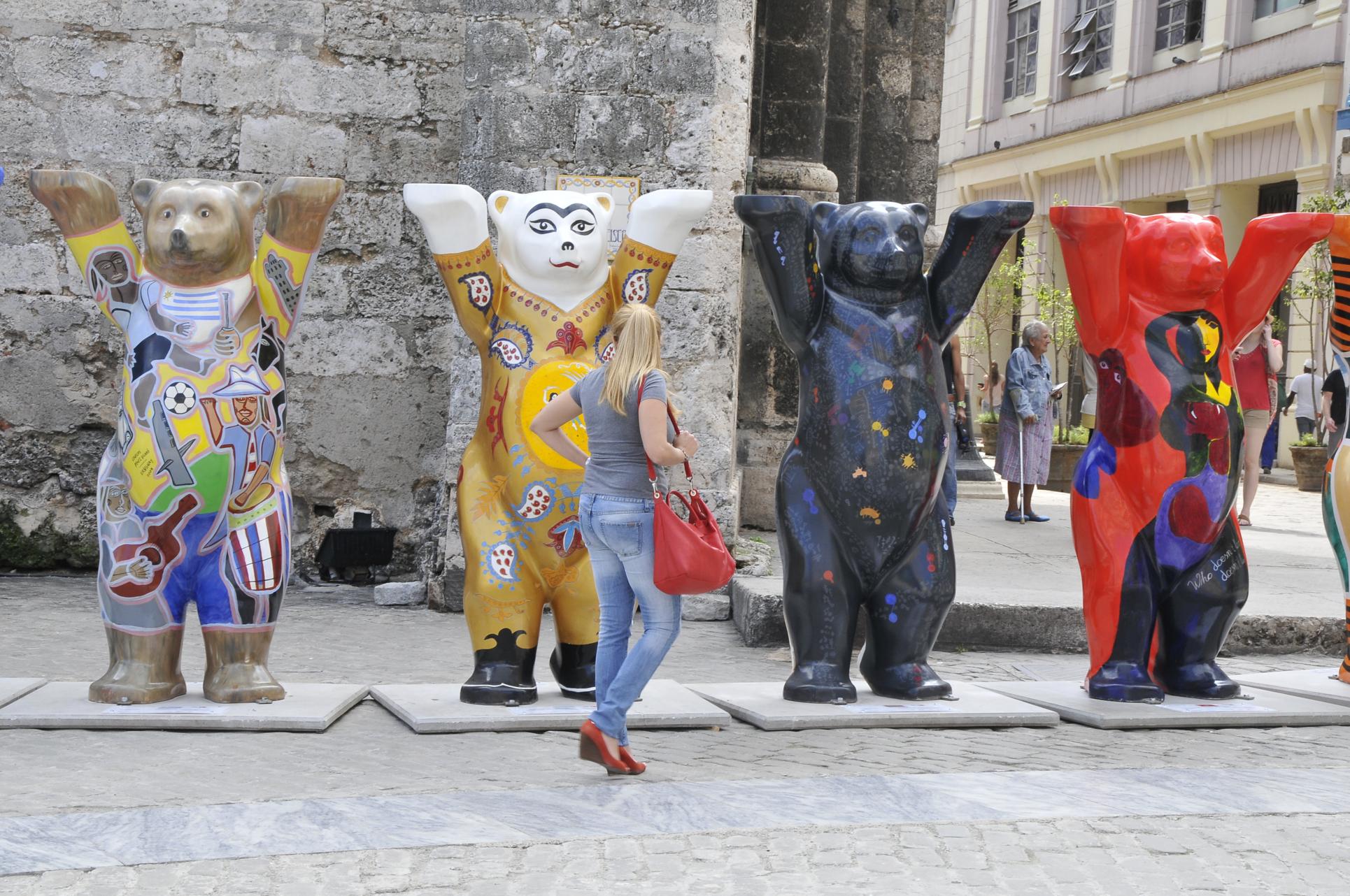 Todo el mundo quiere hacerse una foto con los osos de La Habana y para eso asisten a verlos en la Plaza San Francisco de Asís de La Habana Vieja.