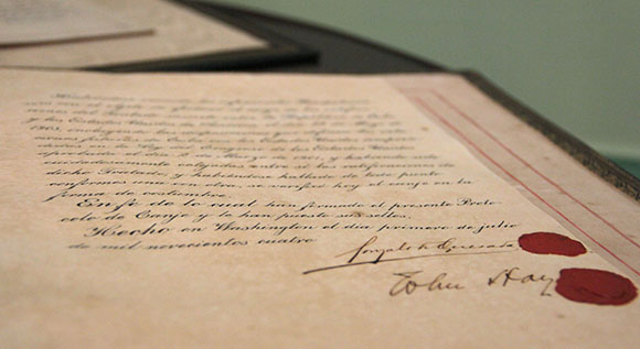 La colección recoge documentos jurídicos como el “Convenio para el arrendamiento de estaciones navales y carboneras” y sus ratificaciones, el “Tratado de Reciprocidad Comercial entre Cuba y Estados Unidos” y “El protocolo de Canje del Tratado Permanente”, preservados todos por el Centro de Gestión Documental del Minrex.