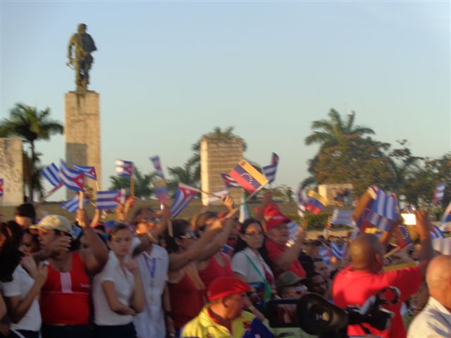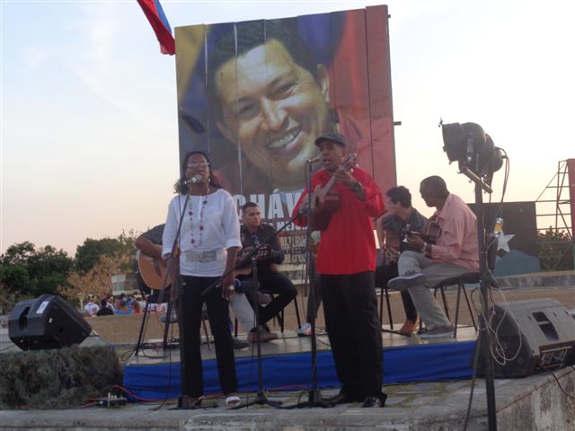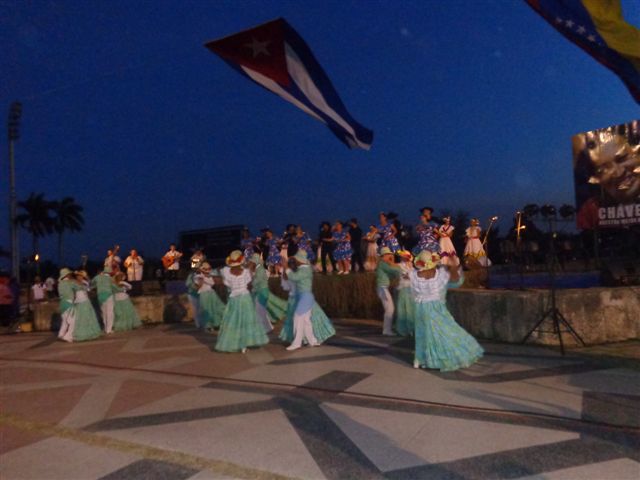 Estudiantes venezolanos que cursan carreras en las diferentes universidades villaclareñas entonaron consignas patrióticas: ¡Alerta, alerta que camina la espada de Bolívar por América Latina¡ ! Chávez vive, la lucha sigue! Junto a ellos, la música y la danza de los artistas del territorio hicieron vibrar en el pecho a Venezuela.