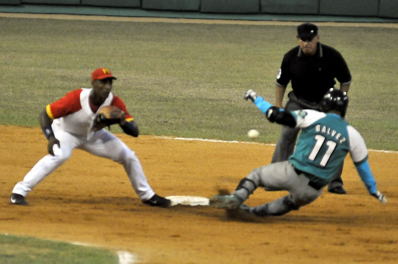 La apertura de ese capítulo la abrió Michel Enríquez con boleto, hit de Luis Felipe Rivera por el campo corto y tras fallar varias veces el toque de bola, el emergente Rodmy Proenza elevó de sacrificio al jardín central. Fue entonces que sobrevino el roletazo de Rigoberto Gómez por el torpedero, perfecto para doble play si no hubiera sido por lo mucho que corrió el bateador, decretado out en un inicio, pero rectificado luego en el video ante la reclamación de la Isla de la Juventud.