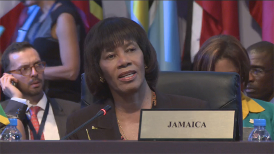 Los 33 países de América Latina y el Caribe hemos dicho que este decreto debe ser derogado, recordó la mandataria caribeña, al intervenir durante la sesión plenaria de la VII Cumbre de las Américas, que este sábado culmina en Panamá.