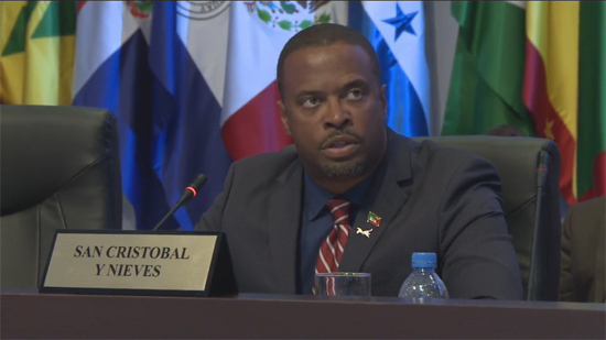 Recordó que somos una región con muchas riquezas y fortalezas. San Cristóbal y Nieves, es una pequeña nación insular, que quiere fortalecer su economía de conjunto con los otros países de la región. También mencionó los embates que sufren debido al cambio climático, y refirió los esfuerzos por lograr una energía verde.