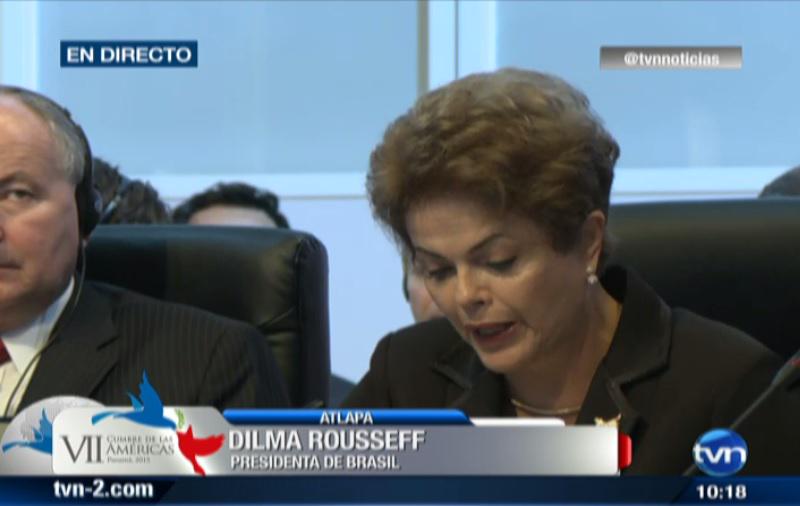 Celebrando la iniciativa del presidente cubano, General de Ejército Raúl Castro y del presidente de los EE.UU. Barack Obama de restablecer las relaciones diplomáticas entre ambas naciones, como principal paso para la eliminación del último vestigio de la guerra fría en el continente, comenzó su intervención la presidenta de Brasil, Dilma Rousseff.