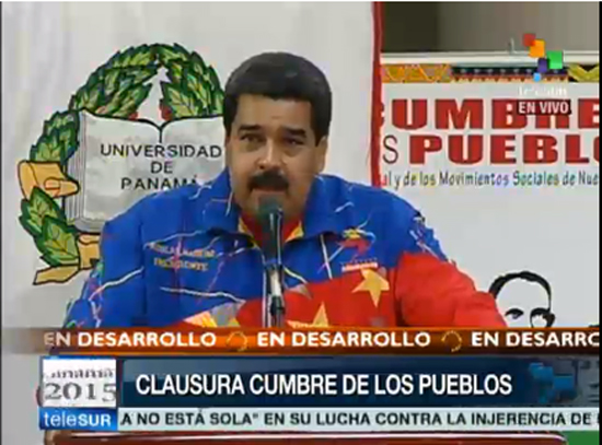 “Esta es una Cumbre de movimientos sociales, que no ha podido ser tapada, aunque los pueblos no existen para las oligarquías. Es importante que este claro que la revolución no depende de un hombre, los dirigentes somos todos como decía Chávez, él estaba representado en el obrero, el campesino, el indígena, construyó la unión cívico militar, construyó Venezuela, y a mí me ha tocado desde su desaparición física tomar la batuta junto al pueblo y enfrentar todas las formas de desestabilización conocidas, se acabaron las páginas del manual de la CIA para Venezuela, los hemos derrotado por la vía de la paz”, sentenció Maduro.