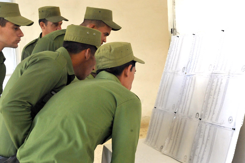 Cuando aún los rayos del sol no se habían dejado ver, arribamos a la circunscripción especial sita en la Dirección Nacional de Tránsito del Ministerio del Interior (MININT), donde previa la autorización correspondiente para garantizar el cumplimiento del servicio en la vía pública, un nutrido grupo de combatientes comenzó a ejercer el derecho al sufragio que el sistema electoral cubano reserva a los miembros de las instituciones armadas.