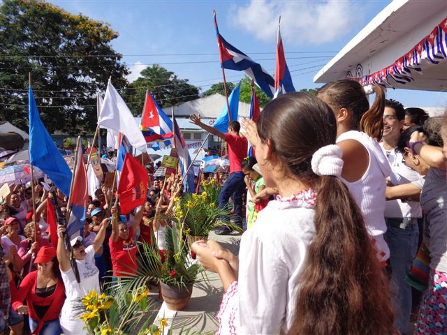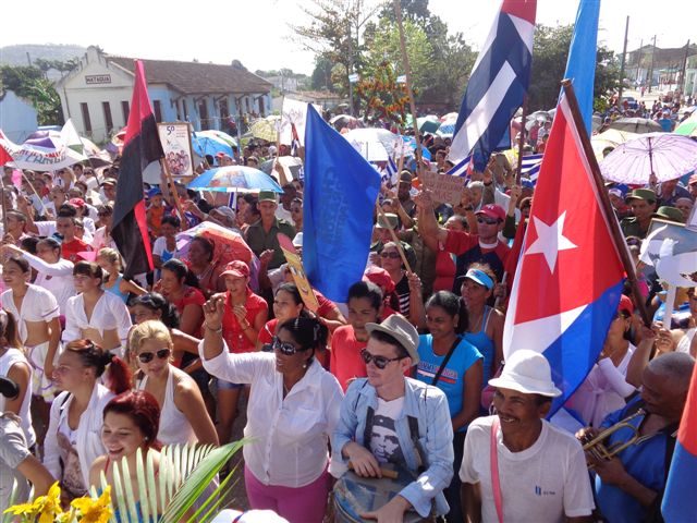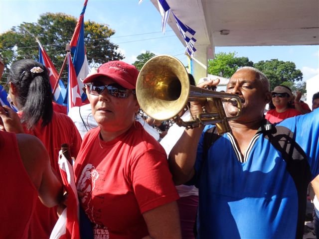 Este pequeño terruño de la geografía villaclareña se colmó de júbilo y patriotismo. Unos portaban banderas de colores, pero sobresalió la cubana, otros carteles alegóricos, también pancartas, flores… Cada sindicato hizo su iniciativa, no faltaron las canciones patrióticas y una conga gigante amenizó la fiesta.