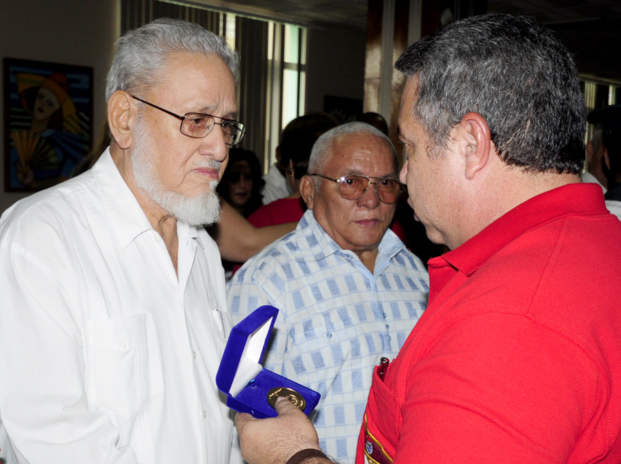 Ulises Guilarte De Nacimiento, secretario general de la CTC puso en manos de ambos homenajeados el honroso estímulo a quienes agradeció las útiles enseñanzas que nos han brindado al acompañarnos durante muchos años en la educación y formación de las más jóvenes generaciones de cuadros sindicales.