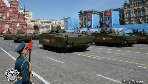 Una vez concluido el desfile militar en la Plaza Roja del Kremlin por el 70 aniversario de la victoria sobre el fascismo, los dignatarios se dirigieron hacia el monumento construido en 1967 donde se hallan los restos de uno de los combatientes rusos caídos durante la Segunda Guerra Mundial, al que simbólicamente se le colocó una lápida que reza: «Tu nombre es desconocido, tu hazaña es inmortal».