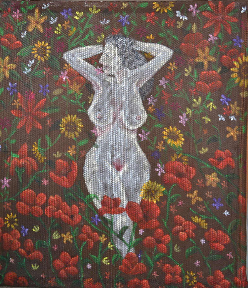 La figura femenina, imagen fundamental de sus pinturas, constituye el eje conductor de esta exposición. En la foto la pieza titulada Paraíso de pasiones. Técnica mixta sobre bastidor de metal. Foto: Eddy Martin