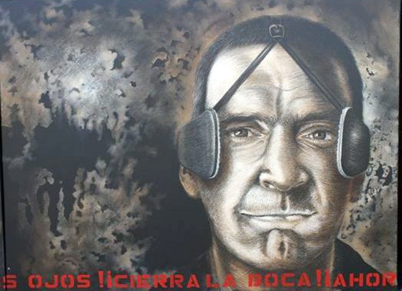En los trabajos del experimentado artista artemiseño Juan Carlos Muñoz, el Taco, esa relación trasciende en un discurso plástico más bien ensayístico y descriptivo, en el cual el autor recrea, sobre la base de la imagen de un mismo personaje, una serie de propuestas visuales, amén de los cambios que se esquematizan en cada una de ellas, y acentuado por la forma de ubicar el texto imitando la “infocinta” que corre debajo de la imagen televisual, pone ante el espectador distintas dimensiones del lenguaje mediante la apariencia o representación de lo real.