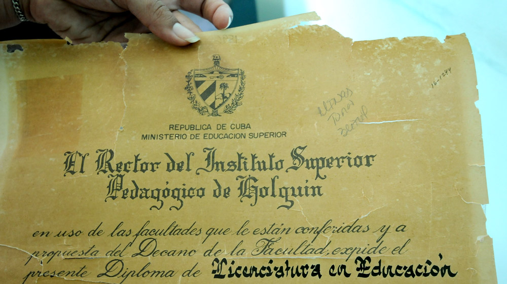 Otro tanto sucede en el pequeño despacho donde certifican en el MINED, que tiene como único personal a Nelson Llinás Betancourt, metodólogo inspector del departamento Jurídico, quien con 18 años de experiencia en la actividad mantiene un exhaustivo registro de todo lo que llega a sus manos.