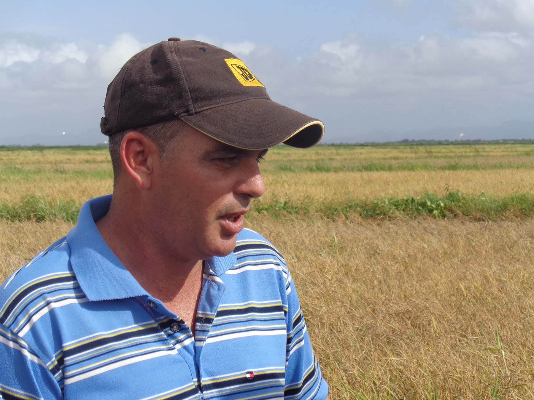 “Hablamos de zonas que anteriormente estaban siempre mojadas, tierras de gran fertilidad y capa vegetal, pero el agua faltó en la época de cuajar el grano y eso trajo consigo que muchas de esas espigas caen al suelo y no se pueden cosechar”, explica Isidro Jesús Ligoña Díaz, presidente de la CCS Abel Santamaría.