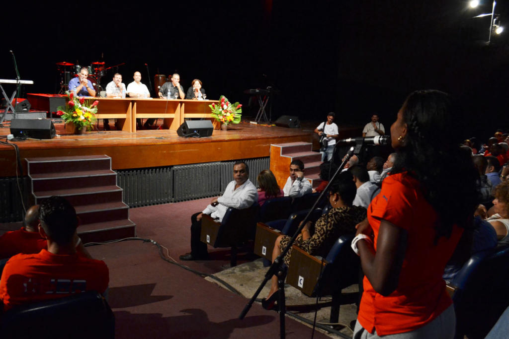 La Sala Covarrubias del Teatro Nacional de Cuba fue el escenario especialmente preparado para la ocasión, que tuvo un antecedente igual de memorable en noviembre pasado, cuando René González y familiares de sus hermanos para entonces todavía presos, intercambiaron con la comitiva que viajó a los XXII Juegos Centroamericanos y del Caribe de Veracruz.