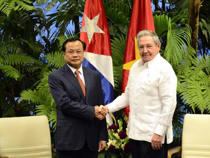 El General de Ejército Raúl Castro Ruz, Primer Secretario del Partido Comunista de Cuba y Presidente de los Consejos de Estado y de Ministros, recibió en horas de la noche del 18 de junio al miembro del Buró Político del Partido Comunista de Vietnam, Pham Quang Nghi, secretario de esa organización en la ciudad de Hanoi, y a la delegación que le acompaña, quienes realizan una visita de intercambio a nuestro país.