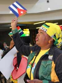 Johannesburgo.- ¡Cuba, Cuba, Cuba! se repite una y otra vez en cada lugar donde llegan aquí en Sudáfrica los luchadores antiterroristas Gerardo Hernández, Ramón Labañino, Antonio Guerrero, Fernando González y René González.