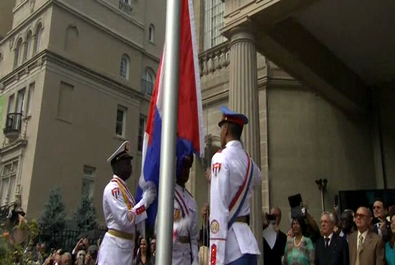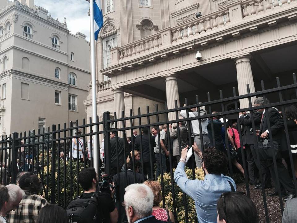 Pasadas las 10 y 30 de este soleado y caluroso lunes, ondeó la bandera cubana en lo alto del asta que precede la fachada de una hermosa casona en Washington. Con ello se inició la ceremonia que dejó inaugurada oficialmente la embajada de Cuba en Estados Unidos.