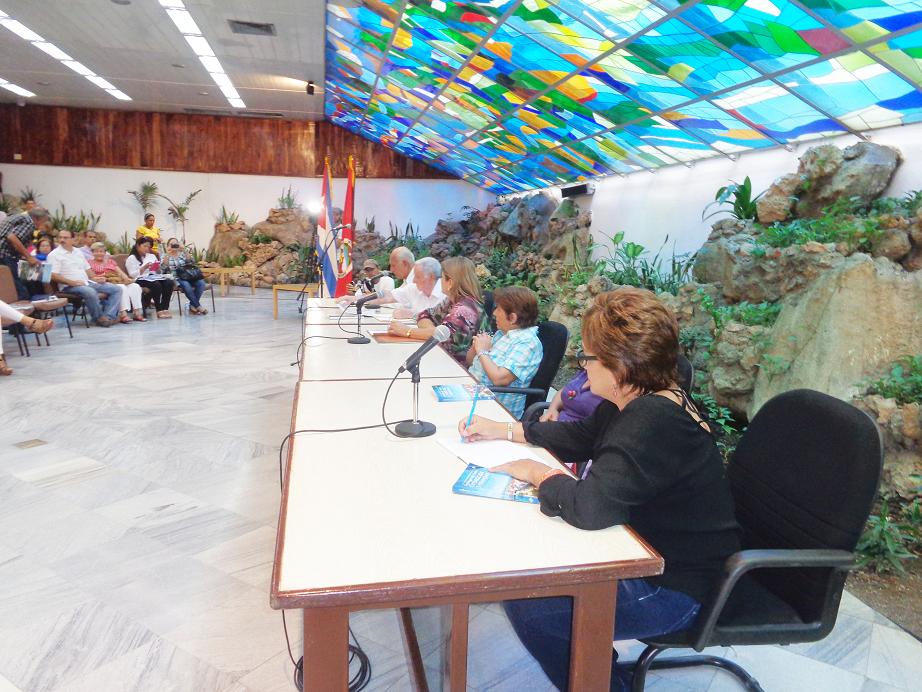 Un nutrido auditorio colmó el Salón de los Vitrales de la plaza de la Revolución santiaguera dentro de los que se encontraban presentes dirigentes de la vida política, militar y cultural de la nación, entre ellos los vicepresidentes del Consejo de Estado Salvador Valdés y Gladys Bejerano, además de ministros y representantes de organizaciones políticas y de masas.