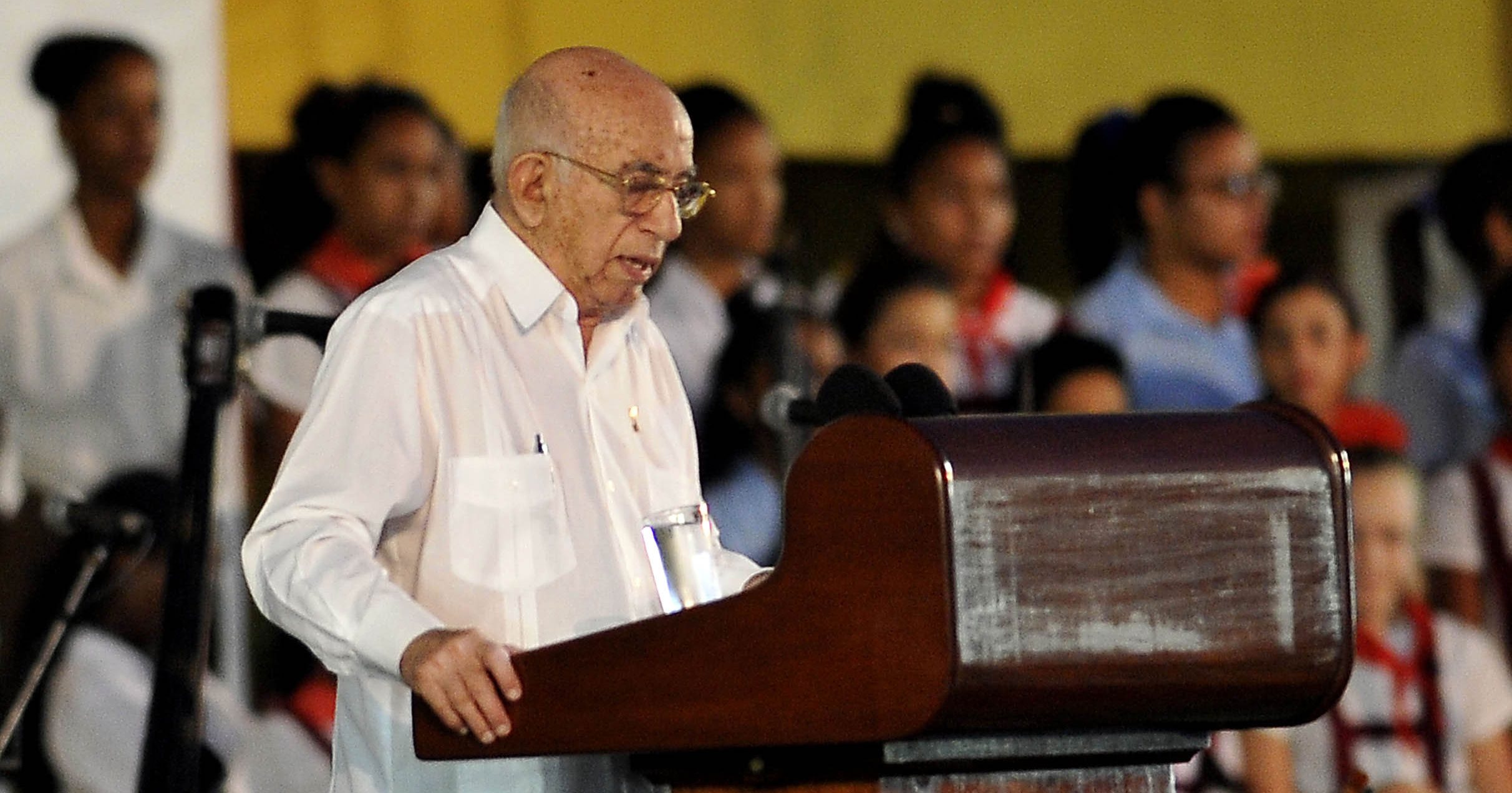 Lázaro Expósito Canto, primer secretario del PCC en Santiago, se dirige a los presentes en el recordatorio de los asaltos a los cuarteles Moncada y Carlos Manuel de Céspedes. Foto: Roberto Ruiz