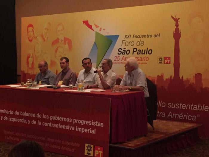 Así se expuso en el seminario que tiene lugar en el XXI Encuentro del Foro de Sao Paulo, que sesiona en la capital mexicana y al cual asisten un centenar de partidos y movimientos políticos del continente.