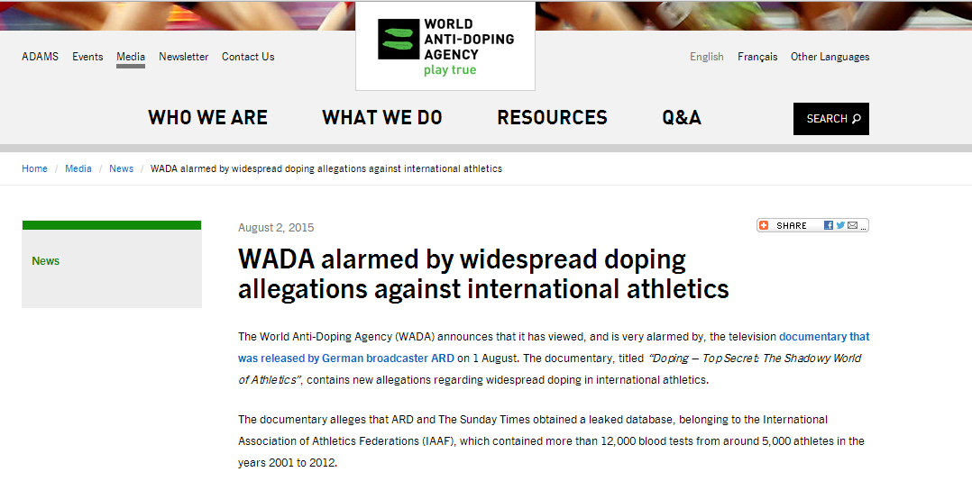 El documental televisivo El dopaje-top secret: el oscuro mundo del atletismo, y el reportaje impreso titulado Revelado: secreto más sucio del deporte, emanan de la revisión de una base de datos propiedad de la IAAF en la cual se recogen los resultados de más de 12 mil pruebas de sangre practicadas a unos cinco mil atletas en el citado período de tiempo.
