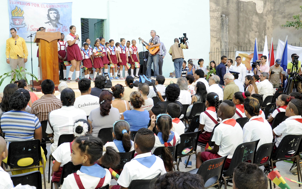 Ubicada en el municipio capitalino de Centro Habana, donde en horas de la tarde de ayer, en el contexto de la visita que realiza a Cuba con motivo de la celebración del cumpleaños 89 del líder histórico de la Revolución cubana, realizó la entrega de 50 computadoras y materiales escolares.