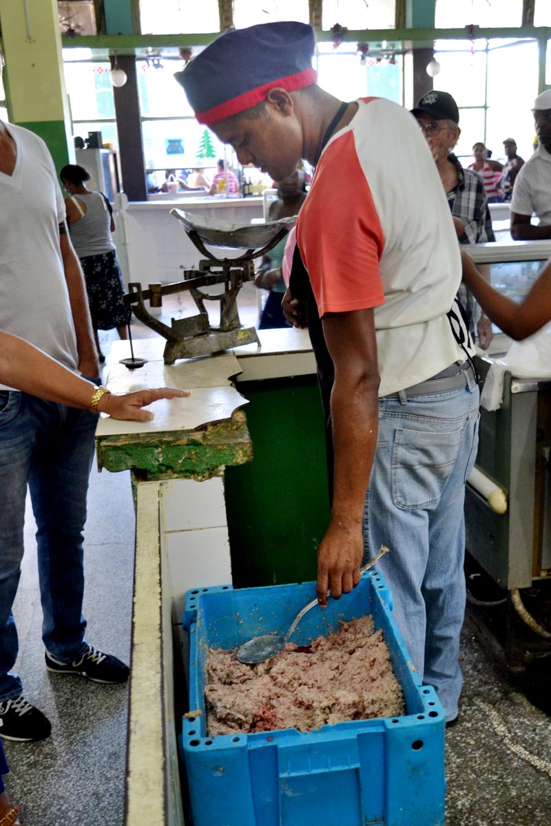 Hace años que en el mundo la carne no se vende de esa manera, por la higiene, pero aun mas en los mercados, todos los que venden carne deben agruparse, o de lo contrario tienen que comprarse su refrigerador, para tener esa carne fresca y no llena de mopscas y otros bichos, las personas que la venden deben tener guantes y taparse la boca, todos los puestos de carne de Cuba estan fuera de la ley de higiene, y los inspectores con unos huesitos y un poquito de manteca se hacen de la vista gorda y una vez que se pongan duros, les dan su cuota de carne para comer el fuin de semana, eso lo sabe todo el mundo y que nadie se haga el de la vista gorda. Ya es necesario que esto frene y se haga algo al respecto, pues las enfermedades grasticas van a estar a la orden del dia y ya han habido sus casos, no especificados pero si han existido, que les renten frizzer y que la gente vea lo que compra que esta bien conservado y esos frizzers hay que limpiarlos semanalmente. Esos mercados no ven una buena limpiweza nunca. y sus pisos y paredes dejan mucho que desear.