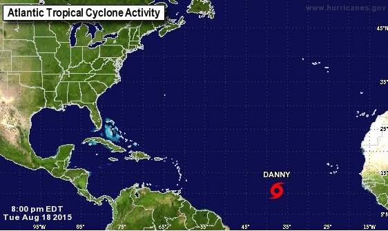 Durante la tarde de este martes la depresión tropical No 4 continuó organizándose y a las 5 de la  tarde fue declarada la formación de la tormenta tropical Danny. A esta hora tenía vientos máximos sostenidos de 65 kilómetros por hora, con una presión central de 1008 hectopascal moviéndose con rumbo oeste a razón de 19 kilómetros por hora.