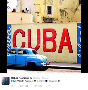 En la cuenta oficial del cantante @usher se puede ver esta imagen con un “caption” o pie de foto que dice, “Café Cubano, lo merezco!”