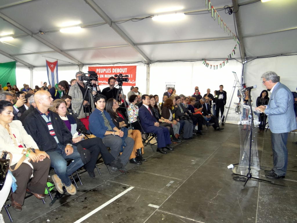 El día anterior Le Hyaric había estado como orador en la apertura del Foro Social de la Fiesta de l´Humanité, en el stand de la Confederación General de Trabajadores de Francia (CGT), la más grande unión sindical del país.
