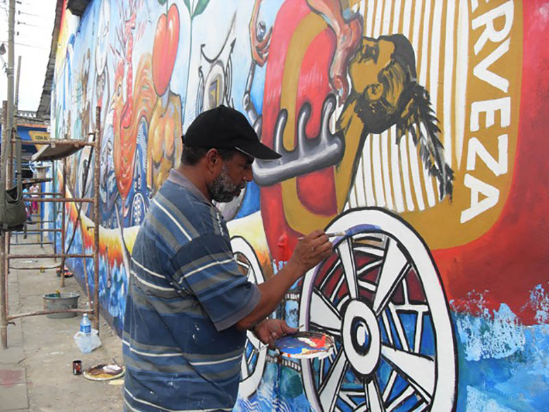 En la foto el artista cubano Luis Contino, mientras restauraba el mural Tengo fe en el destino. Foto: Leyanet Abreu