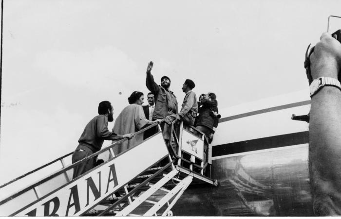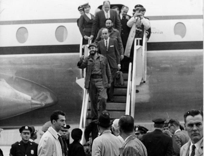 Poco después de las 11:00 a.m., junto a varios miembros de su delegación, Fidel partió rumbo a Nueva York, en un Britannia de la Compañía Cubana de Aviación. A las 4:34 de la tarde, la nave cubana tocó tierra en el aeropuerto internacional de Idlewild.