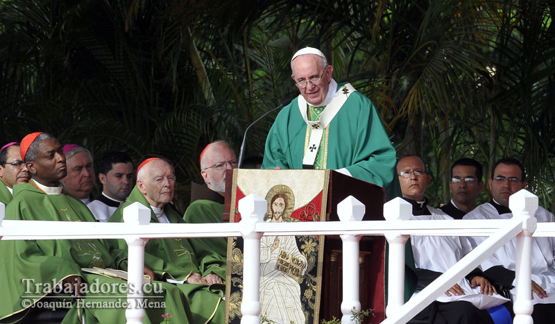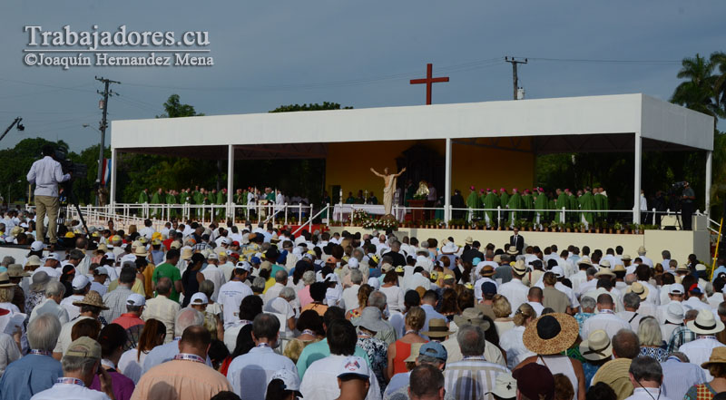 El Presidente de los Consejos de Estado y de Ministros, General de Ejército Raúl Castro Ruz, asiste hoy a la Santa Misa, la primera de las que oficiará el Papa Francisco en Cuba.