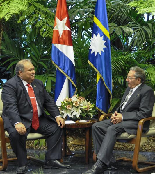 El General de Ejército Raúl Castro Ruz, Presidente de los Consejos de Estado y de Ministros, sostuvo este sábado conversaciones oficiales con Su Excelencia Baron Divavesi Waqa, Presidente, Ministro de Relaciones Exteriores y Ministro de Administraciones Públicas, de Interior y Cambio Climático de la República de Nauru, quien realiza una visita oficial a Cuba.