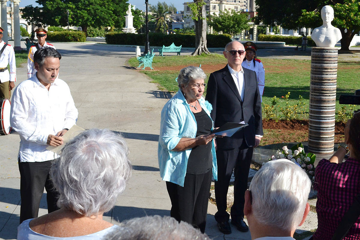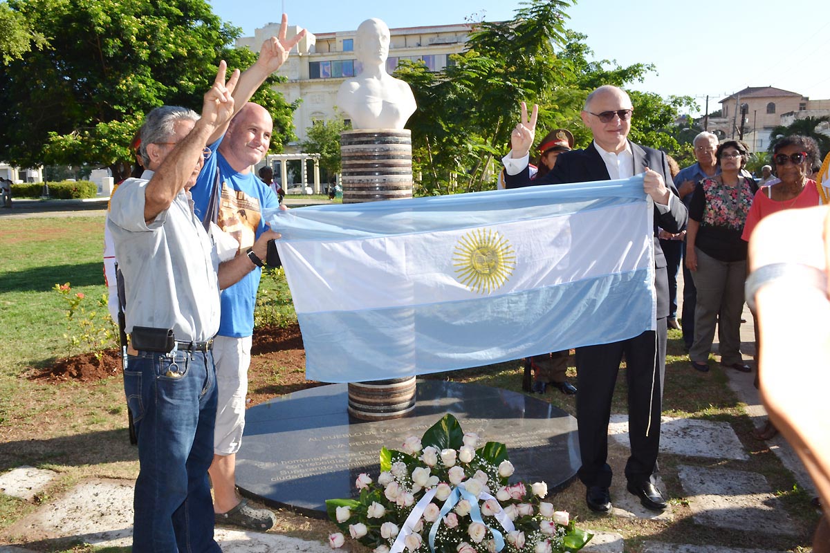 De un encuentro con el entonces presidente de Asamblea del Poder Popular, Ricardo Alarcón y el Historiador de La Habana, Eusebio Leal, surgió la idea de fundar la Casa Argentina en la ciudad, organizar la cátedra San Martín y también homenajear a la mujer “que luchó con rebeldía y pasión por la dignidad del pueblo argentino», frase de Cristina que luego sería tallada en la base del busto, una réplica del que Giusti donara a la parroquia del padre Hernán Benítez, confesor de Evita y que actualmente puede verse en el Museo Evita de la Ciudad de Buenos Aires.
