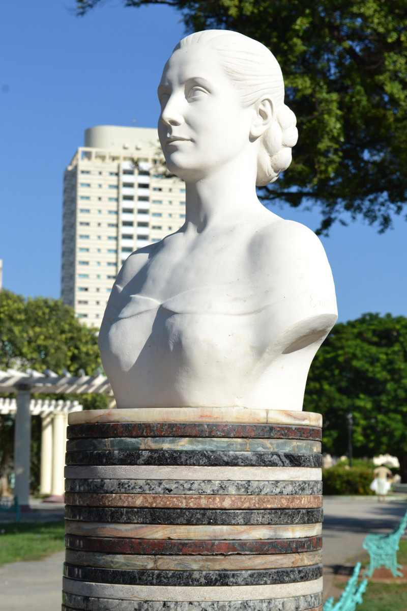 Desde hace cinco años, un busto de Eva Perón mira desafiante a los transeúntes y vecinos de los alrededores del parque Villalón (Calzada y C), en el Vedado capitalino. Su legado de mujer brava y sensible, llegó hasta La Habana como regalo de la República Argentina: