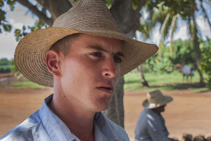Bajo el sombrero de otro que está almorzando hay casi un niño que jugaba y seguía a su padre por los predios de la UBPC. Yoany Amador Novoa (22 años) se graduó como técnico de nivel medio en Comercio y Gastronomía, mas recién graduado buscó trabajo aquí.