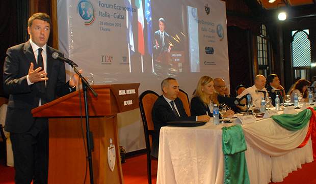 Durante la inauguración del Foro Económico Cuba-Italia el primer ministro italiano, Matteo Renzi destacó la necesidad de explorar oportunidades de comercio e inversiones con Cuba, en el campo de la agricultura, el turismo y el sector inmobiliario.