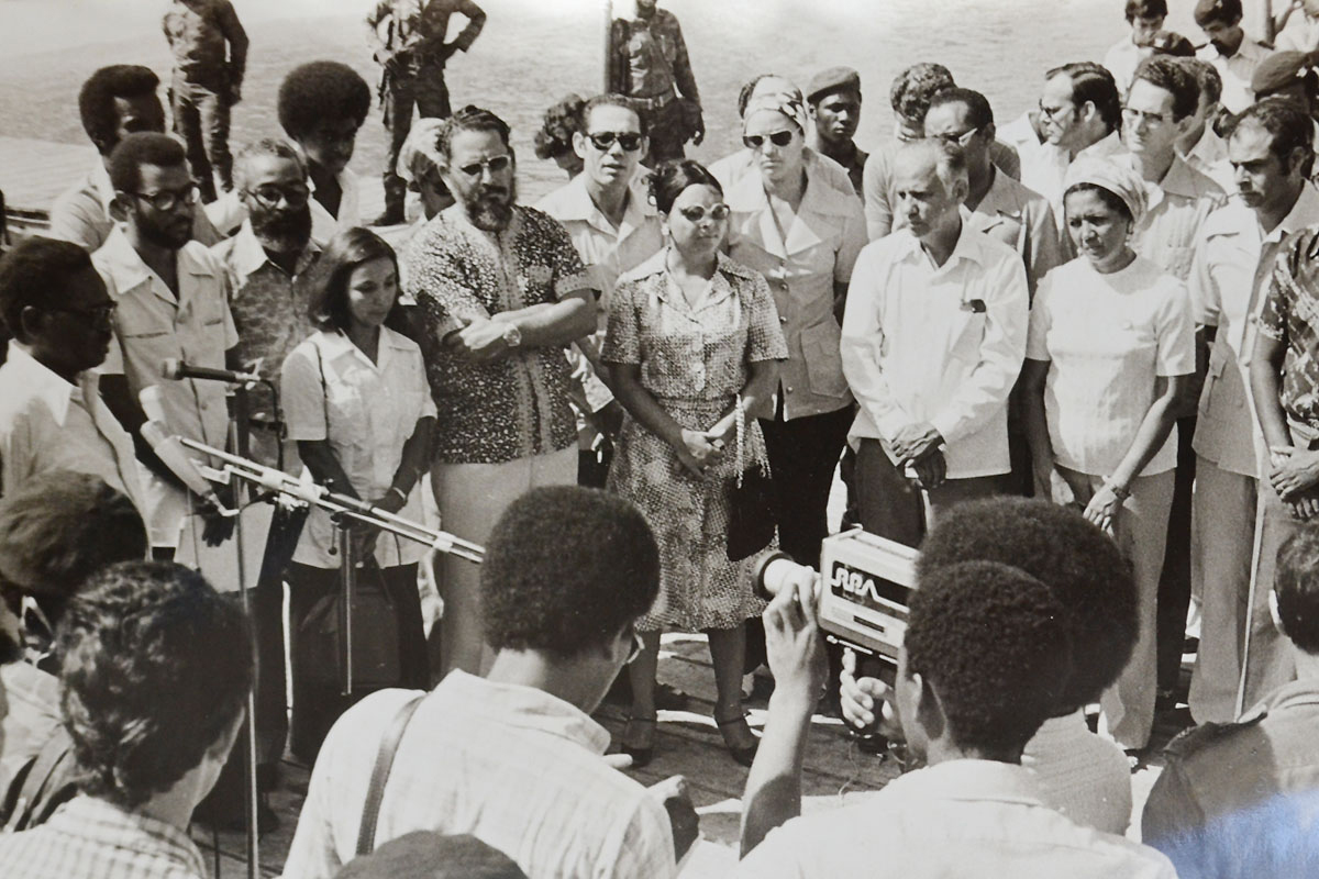El acto oficial de entrega a Angola de barcos de ferrocemento para fomentar las actividades de pesca. A la izquierda, Nancy