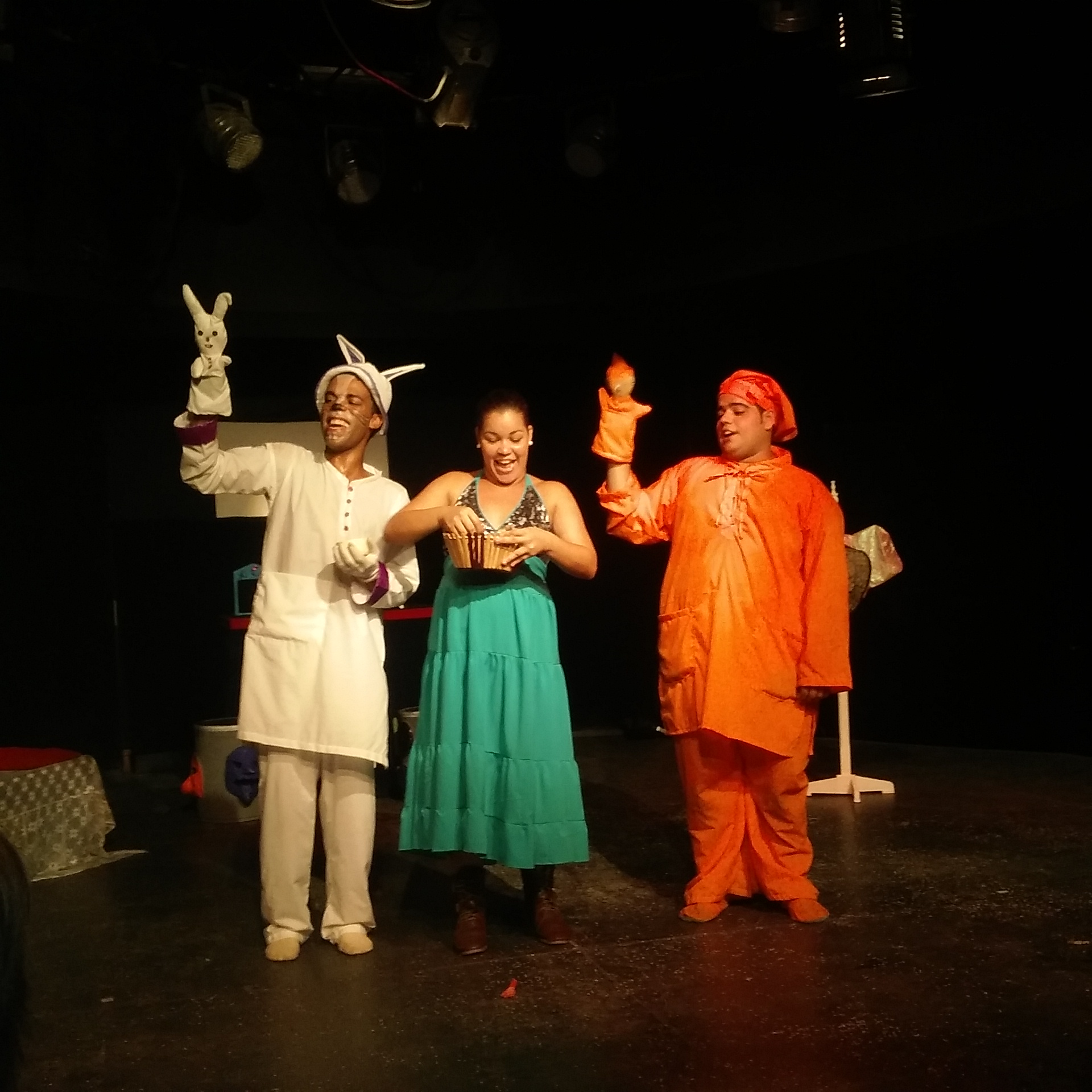 Para esto último usaron las sombras chinescas con Gessy Cobas, también presentadora-animadora, grácil, de excelente voz y manipulación de títeres, como hacen los tres, con desenvolvimiento adecuado a la interrelación propuesta por aquel espectáculo que, no obstante girar en torno al mago y su conejo, cada cual con similar protagonismo, evidencia en lo real cotidiano lo que propone su enunciado en el texto dramático: todos cuentan para la resultante final.